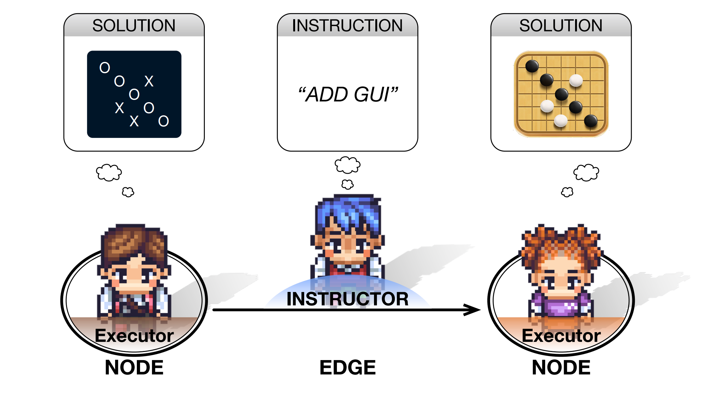 1. Run MacNet: Execute run.py to deploy agents on the specified graph topology and generate software based on the configuration in config.yaml. During this process, you can observe the complete graph structure, the code changes occurring from one node to another, and the corresponding agent suggestions. MacNet will run agents on the graph in the topological order. You can observe the code changes in each node transition and agent suggestions on each edge in real-time.